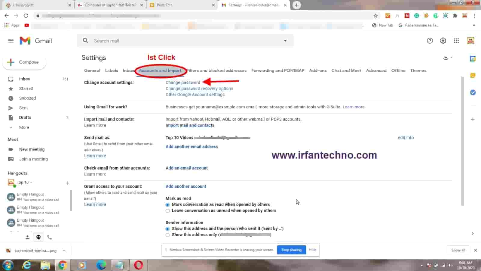 Step3. and then (accounts and import) par click kare, accounts and import par click karne ke baad change password par click kare.